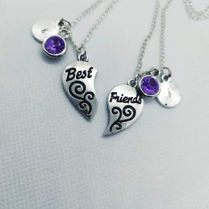 Lote collar corazón dividido “best friends” con iniciales grabadas