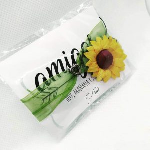 Pulsera “Amigas” modelo lazo con colgante de corazón y girasol