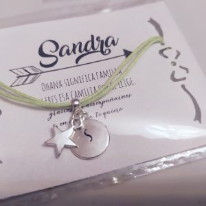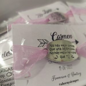 Pulsera Hermanas con lazo ajustable y tarjeta personalizada